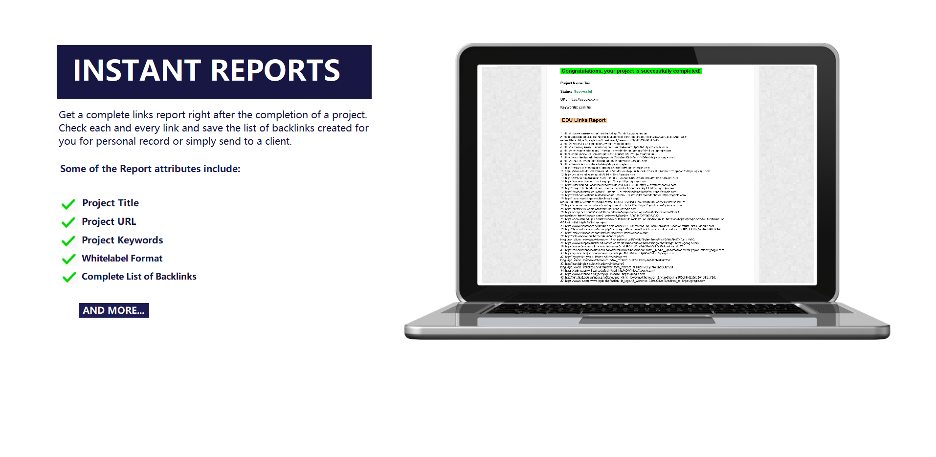 You will instantly get a complete link building report containing all backlinks right after the completion of a project.